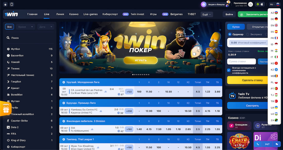 1Вин — это относительно молодая букмекерская компания, основанная в 2017 году. Она быстро завоевала популярность среди игроков, особенно в странах СНГ, благодаря щедрым бонусам, широкой линии ставок, конкурентным коэффициентам и удобному сайту.
